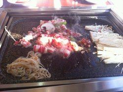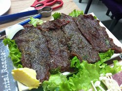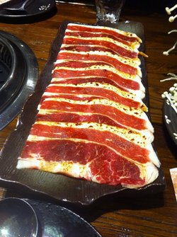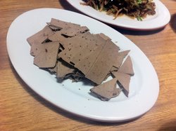 某天中午去吃的,当时是新店开张,店有点儿像那种铁道帮子烤牛肉。店内有套餐,一份牛肉加一份青菜30元,感觉两个饭量小的人是够吃了,吃完了可以下面片,每天有特价菜,肉一般在22左右一盘,最便宜的荤菜是18一盘,青菜6-8元不等,店里挺干净的,老板娘挺热情的,说要做团购活动。我看到现在已经有团购活动了。味道也还不错,不咸,有麻将蘸料配着吃,也可以蘸耗油吃~~照片是吃了好久才想起来拍的~~都没剩下多少了~~性价比还不错…查看更多