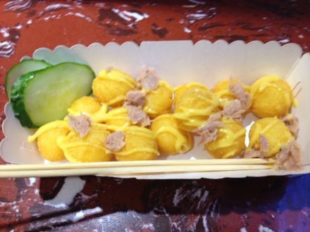 我只能说 刚开张那会一直混迹于此 所以每家都或多或少的吃过了某日路过在派发扇子,然后觉得可爱拿了一把 不好意思间 便决定点一份试试麻辣芝士培根丸 和章鱼丸的感觉差不多,然后会给你淋上酱汁,加上芝士的浓郁口感,还是挺不错的旁边还有一排的地儿是可以坐下来吃的。这个还不错吧…查看更多