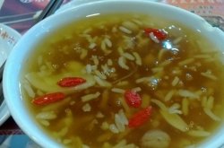 以为是小吃店,看了菜单之后才知道原来这里还有很多菜品的,是正餐。老婆给团购的5.9套餐,一笼汤包(6个)+1碗粥。汤包是猪肉、牛肉、羊肉、虾肉、野菜、香菇馅的六选一。这里的小笼包有个特点,不同馅的笼屉上有字标明,比如牛肉的就写个牛字,不会弄混。汤包真不错,汤汁特别多,但是汤包夹起来一点都不破,很完整。点了牛肉,猪肉,虾肉,味道都不错啊!三种粥里只有黄桂粥了,这正是我喜欢喝的。糯米+莲子+百合+枸杞+花生,营养丰富而且香甜适口,单点价格也才6元,却是真材实料,为了它再去一次也值得啊。这里有几种免费自取的小菜:萝卜、卷心菜、虾片、虾条、瓜子,适合打发漫长的等候时间。…查看更多