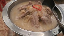 它家属于韩式料理,辣的口味比较重,不过味道很好,光顾的食客很多,几乎桌桌爆满,不过人多空调却不太给力,吃的有些燥热。脊骨锅很实在,量大,里面有好几块骨头,不过肉相对要少些。骨头炖的时间很长,脊骨都被炖的很烂,骨汤超级的辣,不过辣的很香,不能吃辣的人结果被辣的流了眼泪,骨头里的药味比较淡,配料放的好像不是特别足。明太鱼比较腥,有些凉了,口感一般。干豆腐油比较大,淡淡的豆香味,很适合下饭。辣白菜饼味道一般,有淡淡的糊味。…查看更多