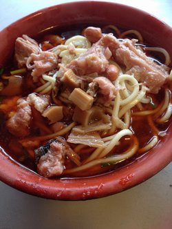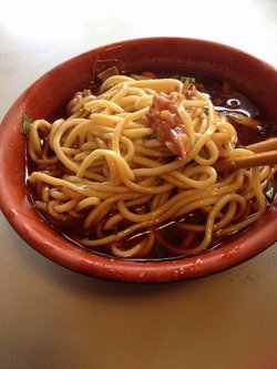 这家小小的面馆跟隔壁那家面馆屹立在新南路附近N年,相比应该有自己的“绝招”吧。据说慕名而来的食客不少呢。 店面不大,可能是因为多年的老店的原因吧,桌面、地面难免有些油乎乎的。 这几年他家面条的价格也随着物价一路上升O(∩_∩)O哈! 一两面已经从以前的4.5元上升到6元了。 先付钱,后上面条。 怪味面是必定要点的,端上来,分量还是可以,里面有鱿鱼、炖肉、香菇、午餐肉什么的,吃起来有点儿咸味、有点儿微甜味、有点儿微酸味,总之几种味道似乎都有那么一点儿,只不过以咸味为主,虽然味道确实“怪怪”的,但是还是蛮好吃的。 鱿鱼面,里面的鱿鱼看得出来都是新鲜的,腥味不浓,这个比较符合我们四川人的口味需求,但是比起出彩的怪味面确实要稍逊一筹。…查看更多