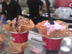 在来福士楼下大家都懂的非常的热!~所以吃冰激凌还是不错的哦!~~很久以前点评团的券,划算的吧,反正从来没吃过,因为感觉贵了点!~而且人也比较多!选的是巧克力和草莓的~~~大份的真的好多呀,完全吃不掉呢!~~哈哈看看,两杯哦,我和妈妈一人一份,哈哈,吃的爽啊!~…查看更多