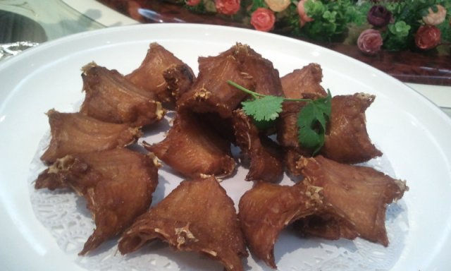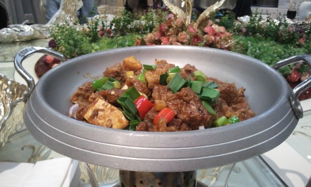 团委聚餐选的这儿,环境是极好的!门口和大厅几匹马,包厢里都是金碧辉煌的,甚是豪华啊!餐具很精美,布置处处细节见功力。前菜满丰富的,这个蓝莓淮山最受欢迎。用清爽的蓝莓酱浇在淮山细条上,吃起来脆脆甜甜,好清新好文艺啊!这个不记得是什么肉了,似乎是干锅牛肉?有点微辣,炖的烂烂的。很好吃。椒盐蛇段,最爱这一口了!好干身好入味,丝丝的蛇肉,香酥,好吃!一块不过瘾。蔬菜沙拉,这个没啥好说的,就是新鲜的菜叶子。…查看更多