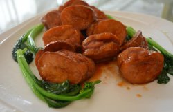 秋天到了海蟹上市的季节,不吃螃蟹怎能对得起自己的胃,于是几人相约去了塘沽比较有名的周记。坐在大厅吃的,环境比较富丽堂皇,但是不时有几只苍蝇飞过稍稍影响了些用餐的心情。他家没有菜单,都是看实物点菜的。中秋去的,海蟹只有长脐,也就是公的,118一斤,五个人一人一只,五只就四斤七两,可见其分量。又点了五个菜,茄汁杏鲍菇、杭椒炒虾腰、醋溜鱼片、八珍豆腐还有一个鲍汁烧真菌。螃蟹相当肥美,虽然公蟹没有籽但是好多油,顶盖肥啊~蟹肉非常饱满,吃起来相当有满足感啊!但是小料有点调的很失败,好多酱油啊,明明应该是醋更多一些的,姜末给的也较少。一个螃蟹下去,胃口已经七八成饱了,菜大家都没怎么动,不过我还是每个菜都尝了点。杏鲍菇采用的是和茄子类似的做法,杏鲍菇里面夹着肉,然后下锅炸的,最后淋上茄汁,杏鲍菇很嫩,很好咬,但是感觉杏鲍菇不易入味所以没有茄子夹肉来的好吃。杭椒炒腰花做的失败了,腰花炒的过老了。醋溜鱼片里面的是黑鱼,很鲜,微微的酸味恰到好处,还放了笋片和木耳。八珍豆腐用料很足,鱿鱼、蟹棒、肉片什么的一样不少,酱汁味道恰到好处。菌类我比较喜欢,只要有点味道基本怎么做我都喜欢,所以烧菌菇我觉得还不错,其实做的方法没什么特别。周记的海鲜都很新鲜,还是不错的,但是服务员不大有服务意识,开始的时候找服务员要热水,服务员把茶壶加满热水就摆在桌子上了,都没有帮我们倒上。希望以后可以改进。…查看更多
