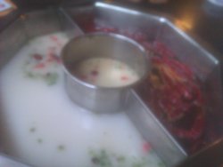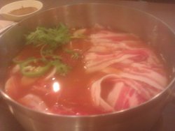 去塘沽见朋友吃饭时特别想吃火锅,无奈没有海底捞,就去了这家在塘沽比较有名气的三巴汤。他家在金街的尽头,招牌很明显,一楼服务员会主动热情的招呼你上去。里面地方很大,光线不大好,感觉很阴暗,去的时候五点多人不是很多。开始来了个很年轻的女服务员招呼我们,态度和一楼的服务员相差很远啊,不是很热情,没有什么服务意识,后来有个年长些的服务员比较有眼力见。要的鸳鸯锅,点了滑类组合,杏鲍菇、红薯、山药、肥牛、木耳、金针菇、章鱼、宽粉还有一些蔬菜,四个人没有吃完,商家还送了一个羊肉丸子和虾。滑类组合里有牛滑、羊滑、虾滑、鱼滑四种,其中的羊滑和赠送的羊肉丸子一个味道,没体现出滑的特点,但是味道还可以,起码可以吃出羊肉味。虾滑和牛滑味道实在一般,没有入口滑滑的感觉,虾滑里的虾也不是很新鲜。杏鲍菇采取了滚刀的切法,太厚了,煮了很久都怎么熟,个人觉得还是切片比较好。章鱼太小了,也不大新鲜,煮久了口感就变的很差了。山药和红薯几乎每次必点,养生又美味。赠送的虾个头不大,倒是很新鲜,这点让我很惊喜。配小料的地方种类一般,没有很出彩的东西。自助饮料有葡萄汁、橙汁、香芋奶茶这几种,葡萄汁稍微好喝一些。四个人花了238,价格还算比较实惠。但是他家有代金券的团购,不让现场团购稍有不爽。…查看更多