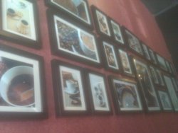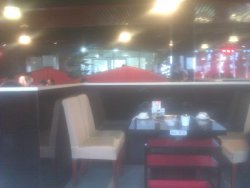在宜昌道上,巴渝人家对过,招牌比较明显。里面灯光比较阴暗,十多桌位置但不显拥挤,除了进门右手边有一个看起来十分舒适的绿色田园碎花大沙发和整体不太搭之外,其余风格很统一。房顶上挂有很多油画。点了一个九寸至尊pizza,巧克力奶昔,和一个小吃拼盘,总共130元。至尊pizza,78元,上来的时候就感觉比平常看到的九寸要小一些,而且Pizza卖相较差。吃起来发现也很一般,芝士放的少,根本不见拉丝,鸡肉块、蘑菇丁都很小,披萨除了饼边以外偏薄,吃起来没有什么满足感。小吃拼盘,32米,笑脸薯饼和黑椒鸡块不错,炸的火候刚好,鸡块的黑椒味道很浓,鸡米花有点坑人,都是下脚料,块很小,肉也很少,最让我无语的是芒果慕斯,这难道不应该是个蛋糕吗?!结果上来是个炸物,三观尽毁啊。里面有芒果粒,依然很小颗,有芒果味,但是是罐头货,感觉一般。巧克力奶昔,20米,价格不算便宜了,不过味道不错,巧克力味道比较浓,一杯也不少了,比麦当劳做的要好喝。值得夸奖的地方是,我找服务员要番茄酱的时候,人家很豪爽的给了我一瓶,让我自己随便用,不错。不过总的来说东西比较一般,价格相对较贵。整个地方只有一个服务员在忙,服务员动作还比较慢。…查看更多