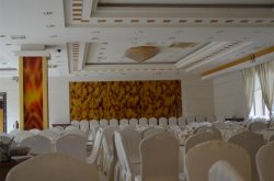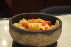 在贵州路上,一中正门岷山饭店的二楼。一楼就有穿着礼服发服务员接待。里面装修的很富丽堂皇,面积也不小,环境还不错,看起来也比较干净卫生。团购的4-6人餐,最后五个人去的,没有吃完。上菜还是蛮快的。盐水鸭肝,无功无过的一道菜,鸭肝的口感不是很细腻,比较粗糙。蓝莓山药,味道不错,蓝莓酱不酸不甜味道正好,但是不是纯山药泥,应该是加了土豆的。菊花秋耳,里面加了芥末的,芥末的量掌握的很好,有一点点刺鼻又不会让人觉得难以接受。同学中又不爱吃木耳的,也吃了两三块。烧鹅量不大,配的是加了蜂蜜的蘸酱,稍微有点油。脆皮鲜豆腐不错,火候炸的很好,刚上来趁热吃,豆腐表面还加了蔬菜的碎屑,吃起来有一种清香,还配了三种酱,孜然、甜酱和辣酱。荷兰豆炒腊味是所有菜里我最喜欢的一道,腊味做的很有味道,微甜,和荷兰豆是绝佳的搭配。其次喜欢的是炒杏鲍菇,我爱各种菌类,几乎怎么做都喜欢。杏鲍菇切成了片,炒的很有味道,而且入口也很好嚼,不会有咬不烂的情况。小炒肉味道是不错的,但是配的是尖椒相当辣,很下饭的一道菜。酸汤鱼别人很喜欢,我不大喜欢,怎么形容呢,就是感觉味道不能称之为酸,怪怪的感觉,鱼倒是很鲜嫩,刺也几乎没有。酱油炒饭的酱油放的略少,米饭貌似不是刚蒸出来的。酸梅汤其实是乌梅汤,真材实料,酸酸甜甜的很开胃。水果拼盘里的哈密瓜和西瓜都很甜,苹果片被氧化了没有卖相了大家都没有吃。虽然菜式很多,但是量都不算大,但是也够五个人吃的了。服务员服务的很及时,但是有些服务员普通话不是很好,和高端大气的装修有些格格不入。人均不到四十的团购价还算合适,一试无妨。…查看更多