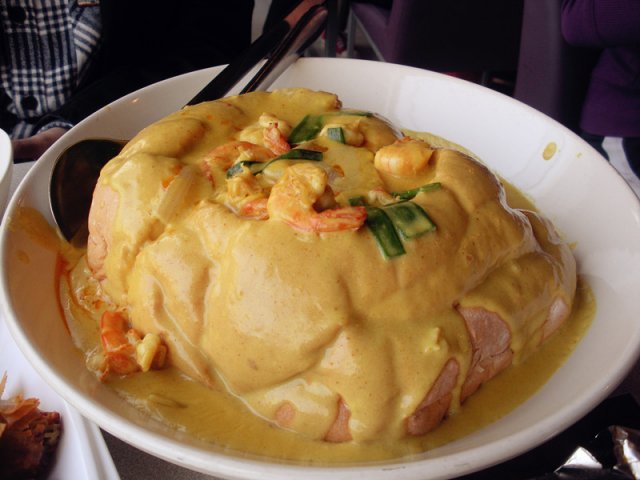 团购去食j既, 好似90蚊左右吧,2碟主食+一个小食+一个甜品-2杯嘢饮咖喱面包虾--呢个超大碟, 咖喱都几好味, 虾就唔多咯, 就得铺面果几粒!不过个人认为咁样浸住旧面包, 唔多好食咯! d面包浸到发晒水咁,口感唔好 剁椒三文鱼头--都几大碟, 不过觉得咁样整系浪费咗d三文鱼头咯, 一d鲜味都食唔出!好似食川菜咁~~ 都唔知泰国菜系米真系有呢味咯1泰式春卷--无咩特别, 同粤式春卷就系d陷唔同咗, 我觉得粤式仲要好食d!泰式千层膏--冻冻地, 上面绿色果d唔知系咩,中间有d兰香子,下面有层椰汁膏吧,口感系有既, 不过我个人唔系咁中意食, 无乜特别~~椰汁冰--好普通既椰汁咯,卖相又唔多掂,一杯大一杯细。。。之前一直都听人地讲话好食, 但食过呢个团购之后,觉得好一般咯, 尤其系环境唔系咁好, d位太窄了,台与台之间既距离大概就得10-15厘米,简直就系同隔离台一齐食饭!毫无隐私, 连讲句话都唔想啊!!!! 坐得一d都唔舒服!张台差d就放唔晒d嘢食噶啦, 食得好辛苦咯! 唔推荐黎呢间~~唔知其他分店会唔会好d~~…查看更多