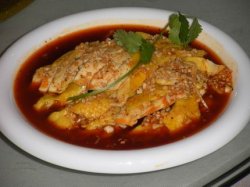 这家店可以说新派川菜的代表,开在世上的淮海路上,自然也是有它的创意。水煮鱼拿几片面包给你吸油,跟正宗的川菜做法不太一样,有了改良,但吃上去感觉也不错。麻辣诱惑蛙,~好麻的,但是很入味,让人禁不住一吃再吃的。口味上算是我吃过的比较麻辣的了。…查看更多