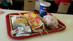 昨天中午的午饭是在南站这家肯德基解决的,点的脆鸡堡的套餐,还不错吧,喜欢肯德基家的汉堡,感觉味道比较地道,一如既往的经典,里面的鸡肉挺大一块的,很香,又多要了骨肉相连,我的大爱,呵呵,看着就过瘾,辣红辣红的,其实吃起来稍微有点点甜,甜辣,肉不老不嫩,火候很好;可乐少说一句话,服务员给我加了好多冰,郁闷。…查看更多