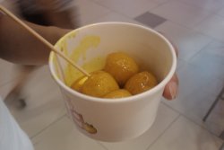 在日月光广场玩,正好路过这边,有点饿了,选了咖喱鱼蛋尝尝,鱼蛋的口感就好像火锅里吃的那种墨鱼丸,上面浇了咖喱汁,挺Q的,味道还不错。5块钱4个,也不贵,听说那边还有别的香港小吃也不错,有机会去尝尝别的。…查看更多