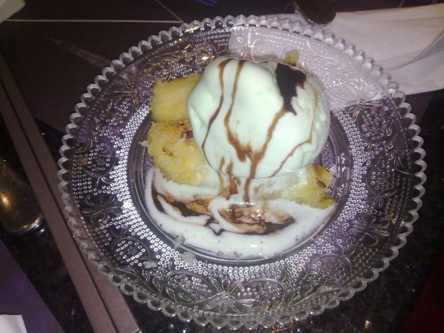 这家法式餐厅的最大特点就是食物都是即点即做的,大厨师会亲自展示食物制作得过程,感觉很有趣。最精彩的就要数火焰香蕉冰淇淋,一刹那的大火烧冰淇淋非常震撼,不过要马上吃,不然就融化了。香蕉口感香脆,与冰淇淋冷热相融,口感非常特别。…查看更多