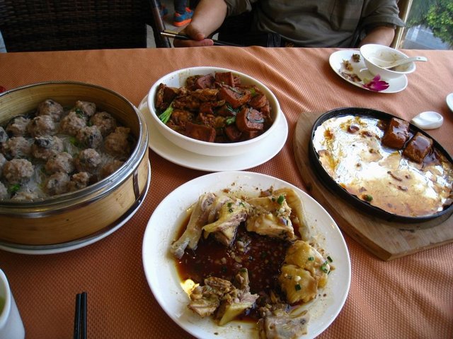因为种种原因家里好久没出门吃饭了。。。天天自己煮都有点腻。今天天气不错。又想试下淘点点优惠。查了一下,发现家门口那里的饭店有淘点点优惠哦。于是马上定位置啦。网上点菜我们去的比较早啊。5点半的样子,店里没什么顾客,所以我们选个了靠窗边的味道。风景不错的。店里不是听大,还是挺干净整洁的。看了一下这里的菜色主要还是粤菜啦。价钱一般般。不过这次有淘点点活动可以100-50.所以还是ok的。鲍汁鲜菌自制豆腐菜品价格: 0.1元美味评分: 5分 超美味这个是淘点点送的。非常好吃。。赞。这个豆腐里面非常嫩滑,而且淡黄色,感觉里面由鸡蛋做成了。鲍汁非常鲜美,下面垫有洋葱和蘑菇片,蘑菇片吸取了鲍汁的味道。好鲜美。很喜欢这个。甘葱好味鸡菜品价格: 42.0元美味评分: 4分 好吃鸡是靓鸡来的,肉都几好吃。不过刀工不得,全部都连刀的。 而且浇的酱油太咸了。金银蒜粉丝蒸自制爽肉丸菜品价格: 32.0元美味评分: 4分 好吃味道还ok吧。粉丝几好吃。肉丸一般般不是非常爽。三水豆腐焖妈子蛋角菜品价格: 26.0元美味评分: 1分 难吃这个是全餐最差的。。咸到没朋友。。 话说蛋角我的理解是2边都是蛋包住里面的肉馅的。。但是里面就最多是个蛋皮的样子。。。 这个最失望了。一家人都没吃几块。走的时候跟店员话他家这个菜味道不得。结果她话,估计他们的菜不合我们胃口而已,好多人都点这个。。好无语。。阿妈说没下次落。这里环境还是不错的,干净整洁,店里只有2个服务员,人多的时候忙到不行。上菜比较慢。位置来说还挺靠近地铁的,不过这样肯定是做街坊生意的,毕竟靠近一个大型楼盘味道一般般吧。东西偏咸,第一次在外面吃饭觉得那个菜难以下咽的。。。。。估计没下次。。。…查看更多
