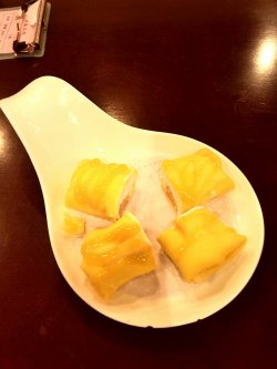 里面装修倒是挺好看,标准的港式餐厅风格,还有我喜欢的绿色元素在里面,感觉挺温馨。点了一份猪脚姜,里面一大块是烧糊的,糊得很离谱的,还送上来,叫了值班经理来,要换另一个菜,不给换,硬是只能重做这个菜。没想到上来的一样还是烧糊的味道,吃了两口,实在不想吃下去,那一碗就那样浪费在那里,吃完马上走人,不想在呆下去。凤爪吃起来感觉也是有点变质的味道。唯一不错的是水晶虾饺。吃起来很苏脆芒果班戟 以前没吃过,不知道正不正宗。不过口感还可以,就是一层面皮里面包了厚厚的奶油,还有一点果肉在里面。萝卜牛腩有几块怎么也是黑黑的,味道跟正踪的广州萝卜牛腩一点都不沾边。完全破坏了广州这个特产的招牌。总评,好不容易找到这样一家装修漂亮的港式餐厅,可是食物就差强人意,很失望,以后倒贴钱给我去也不去。…查看更多
