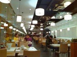 地点在世贸百货4楼,位置很好找。装修为西式简约风格,却也很温馨。去里面吃饭是因为团购的牛排单人餐,刚开始前面开始几个服务员态度都很好,倒水啊,蹲式服务点餐都令我很满意。后来叫了一个在对面桌服务的,女服务员过来加开水的,就站在我对面,拿水壶指向我倒,而且倒得满满的。明显,态度很差,就像不愿意做似的。全程印象都败在这个女服务员身上。关于食物本身,茄汁意面,面就几条,份量很小,也吃不惯,没什么特别之处。可能西餐就是这样的,牛排倒是很大块,一个人吃到腻都吃不完。奶油蘑菇浓汤跟在萨利亚吃的差不多,但没有那么咸,奶茶也不像纯正的奶茶。总评:环境漂亮,可以上网,食物一般,服务一般。…查看更多