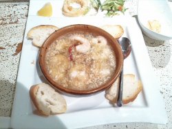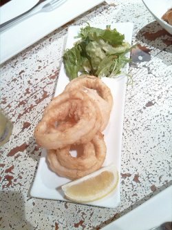 门面倒是挺隐蔽的,很朴实,如果没人说的话,不知道这里面会是一间餐厅,还以为是杂物仓。里面生意倒是挺好,如果不提前订位的话,会经常碰到没位,但是还有小小的吧台可以用餐。蒜香土豆,味道不错,香香的炸过的蒜香味,最喜欢吃这种油炸过的食物。洋葱圈,虽说是洋葱圈,但是吃起来不像是洋葱的,好像是鱿鱼做的,也挺香的。蒜香虾,蒜粒放到油里面煎之后再把虾放在里煎,味道超香,再配上法棍。这个不记得是什么鱼饭了,吃起来了软棉棉的,不习惯这种风格的饭。都没吃完。这一大盘还150多。价格偏高,三个人吃了这几个菜,总共300多,另外因为同事是熟人,还是叫送了三杯柠檬水。不然不止这么多钱。…查看更多