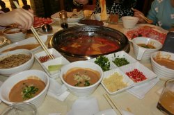 位置很好找,工体北路和春秀路的交叉口。传说是三个明星开的,李冰冰,黄晓明,任泉。那天去吃饭,就碰到任泉和李冰冰,好激动。菜的摆盘都很用心,摆得很漂亮。像花一样。鸳鸯锅,麻辣锅偏辣。浆料小菜都收费,筷子也收费,价格偏贵。那天7个人吃了将进400,还是打了6折的,事实上只是菜打折,原价都要500多。服务很好,很到位,旁边一个服务一直在一边加水加汤的,都很有礼貌。…查看更多