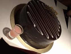 同事生日买了一个9寸的浓巧克力蛋糕,表皮就是一层巧克力,很软很好吃,可以说是精华。中间分别是三层不同的蛋糕坯,甜度是可以接受的!关键的关键是,他家的蛋糕非常的实诚,起码五六斤~赞一个…查看更多