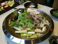 韩国八色烤肉不管去没去过韩国,估计都耳熟能详吧!颜色从浅到深,味道由淡及重,各种药材的添加,号称是非常健康的呢!一个套餐还带海鲜汤~赞一个,最后还可以加点一个芝士炒饭!肉我是分不出那么多味道的,不过,量还是少了点,两个人吃差不多!…查看更多