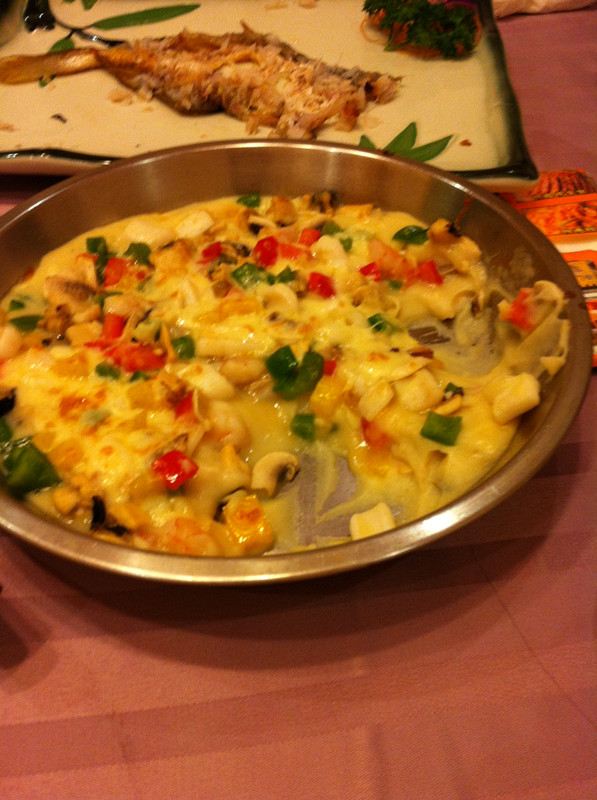环境很好,很适合情侣和闺蜜,排排拖,聊聊天。在5楼露台吹着风饮杯酒确实很有情调啊。味道还不错,据说是德国风味。烤猪手98,虽然皮烤的有点硬,有点咬不动....不过确实很好吃。胶原蛋白吃了也是很滋补的烟肉蛋汁芝士意粉,65元,烟肉是烟熏的腊肉,很香,加上蛋汁的意粉很好入口,意粉上面还铺上满满的芝士,喜欢芝士的童鞋不要错过哦香肠拼盘,98元,其实就是四条香肠+一只煎蛋+土豆泥+一些蔬菜,看每桌都点了一个,于是也跟风了一个。有点贵啊!最悲惨的是,吃完以后,某天看到这家店也有团购!团购的内容和我点的这些差不多,价格便宜了一半…… 所以,下次没有团购或者优惠我是肯定不去了……除非有人买单 O(∩_∩)O哈!…查看更多