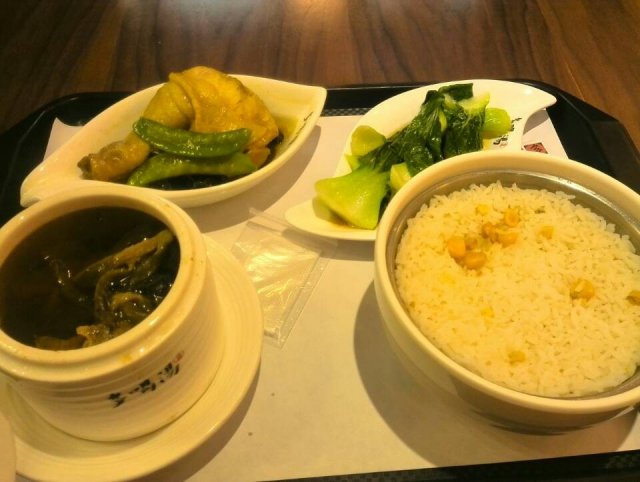 在地铁站对面,位置很好找,环境一般般,就是普通的快餐店,类型和真功夫相似。点了豆鼓鸭饭套餐,分量还行,但东西不怎么好吃。味道比较重,咸咸的,有股姜味,炖汤的话就还可以。虽然不算浓,但是很清甜。人不多,坐着还算舒服。…查看更多