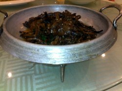 圣诞节,特意选择和爸爸妈妈一起去饭店吃的呢!说是一年到头要放松放松。爸爸早早的就把位子定好了,我和妈妈晚上6点到的饭店,外面几乎坐满了人,爸爸早就把菜单看了个遍,饭菜也点的差不多了呢!门口的圣诞树,好是喜庆,还有霓虹灯闪闪烁烁漂亮极了呢!老板娘很热情的招呼着我们!爸爸最爱的素菜丸子,其实这个菜我觉得不是很好吃,里面真的是纯素菜,荠菜馅的素丸子,外面用油炸了一下,所以特别的外脆,咬一口,一种清淡的菜香味,不过其他真的没什么味道,不咸不淡的,我觉得很一般,不过丸子真的也够大的!干锅茶树菇,因为我们家的习惯,肯定会点一样关于菌菇类的炒菜,所以茶树菇就是我们的首选,不过里面还有肉丝,有点偏咸了,让服务员点了火,一直在燃烧这,热乎乎的,死啦斯阿拉的响声!扎肉狮子头:一开始本以为都是扎肉呢,还有就是个大的狮子头,不过惊喜的吃到了鸡蛋,和狮子头长的太像了,混在了锅里面,味道很不错,鸡蛋应该是提前卤过的,滋味特别香浓,外酥里嫩的,不过扎肉肥肉太多,很油腻京酱肉丝,我一直以为京酱肉丝使用豆腐皮包着吃的,他们家使用小饼包着的,小饼白嫩嫩的,松软极了,肉丝肉嫩,量不是很多,不过一家三口肯定够吃了呢!小饼中夹着肉丝和大葱丝,超级香!松子鲈鱼,次次都会点的,喜欢这种酸酸甜甜的味道呢!鱼被整条下了油锅,所以外脆里嫩,外面煸炒过的番茄酱酸甜适中,还有虾仁和青豆做点缀,五颜六色的赏心悦目。最后还要了一份素菜,解解油腻,不过这个塔菜做的也很多油呀,笋片倒是很嫩,滑滑嫩嫩的,一片一片咬起来还清脆,还是觉得厨师的菜都似乎有点咸了呢。倒是很下饭的呢!黑椒牛肉:外面上来的时候用锡箔纸包着,一打开热气腾腾,香气扑鼻!牛肉块蛮大的,而且酥嫩入味。适合老人和小孩子不会咬不动!不过量少了点,几口就吃没了,没有看上去那么多!圣诞节,在外面吃一顿也算是蛮开心的,要是天空再飘着雪花,这个冬季就更加的完美了!吃着美食看着雪景,享受呢!…查看更多
