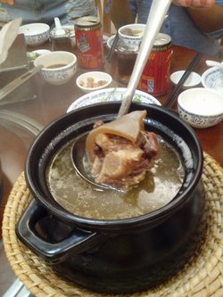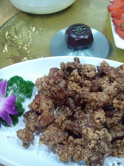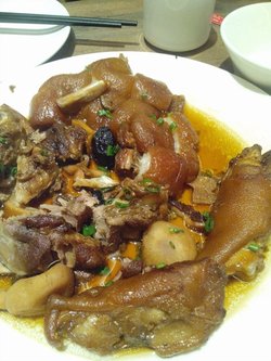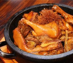 福春姜母鸭(火车站店),顾名思义这是一家做姜母鸭起家的餐厅,这家店可不单单只是有姜母鸭,还有非常多闽南地道的菜品,很多居出自翔安古厝那些人家家里都必有的美食哦!一进店门就是古色古香的闽南古厝的造型,大门进来点就能看到很多真空包装好的姜母鸭装在礼盒里,这些伴手礼很是方便,大家买回家拆开包装盒子微波加热后就能食用,非常方便。以前来这家店也有买过现做的姜母鸭,打包带走。福春姜母鸭,58元,一上桌就香气扑鼻,完整的一只鸭子,看不到姜,但是有姜香味儿,用古法锅炖加水闷熟,一点都不上火,鸭子里已经掏空了内脏,里面包着少许姜,下筷骨肉分离,不过个人觉得好像做得过于烂了,而且不够干不是传统姜母鸭的做法啊。翔安福春红脸番鸭,180元,这道菜我就非常喜欢,用的类似于铁板的做法,端上来还是吱吱作响,鸭肉“辟”得干干的,香气扑鼻,很快就被一扫而空啦。同安封肉,里面加了香菇,板栗,做的时候用纱布包裹起来,好几包封肉一起炖煮,所以一块封肉集合了好多肉的香气。色泽亮丽,肥而不腻。配饭吃是最好的。海蛎紫菜煲,这是闽南一道家常菜了,不过海蛎和紫菜我都不爱。糖醋松鼠鱼,58元,很有卖相的一道菜,卧鱼上点点的玉米青豆胡萝卜丁,点点青黄橙,鱼油炸后糖醋处理,照理说应该是酸甜可口,但是这道菜没放盐还是什么的,太淡了,不好吃。大肠血煲,这道菜跟同安地道的大肠血差太多了,没有扑鼻的香气,味道淡淡的。整体上来说,这家做的同安菜还是比较地道的,因为老板据说就是同安人,而且很多厨师啊服务生都是同安人。不过服务员可能是太忙了,有时候叫都没有过来,服务需要加强哦。 …查看更多