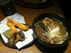 中午去的,里面灯光比较昏暗,在外面一点都看不出里面的生意挺红火的,基本满座。天夫罗荞麦面:天夫罗是单独放的,所以吃在最里外层很酥很脆,而且一点都不感觉油腻,里面的虾肉挺大个,而且很新鲜,肉质相当有弹性,青椒和茄子也不错,口感很清爽。荞麦面比较筋斗,有嚼劲,汤汁看上去很普通,但很鲜美,而且喝了后不觉得口干。铜罗烧布丁:这个甜品好好吃,铜罗烧鸡蛋味很浓郁,热热的,里面夹着布丁和红豆,凉凉甜甜的,层次感很丰富,里面还加了些奶汁,吃起来像是融化后的香草冰淇淋的味道,很喜欢。…查看更多