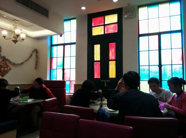 在北京路附近,看到这家店有团购,110元的充值卡卖95元,现在还可以再优惠20元,想着两个人吃基本够了,虽然觉得一般茶餐厅的出品不会有什么惊喜,但懒得想吃什么,所以就团了。这家门面不大,中午1点左右已经基本满座,我们在一楼找不到位置,就向上走,一直到了4楼才找到一张大桌,想不到这一整栋楼都被租了。餐厅里到处都是香港特色的布置,霓虹招牌、香港路牌、古惑仔等港产片的海报、彩色玻璃窗等,当然少不了茶餐厅经典的卡座,让人有种置身旺角的感觉。看了菜牌才发现,其实这里不是正宗的茶餐厅,因为除了粉面饭外,其余都是酒楼的炒菜菜式,款式倒挺多,什么粤菜、东南亚菜、刺身等等,甚至连鲍鱼都有,不过价格也不便宜哦,基本在4字头以上。因为我们只有2个人,按着110块左右的价格,只点了两个菜和一个饭。- 炒花甲:我比较喜欢吃贝壳类的海鲜,不过之前在别的地方点花甲有种被坑的感觉,空壳、死花甲占了一半以上,所以点这个菜的时候也有点犹豫,还好上菜后没有太失望,虽然空壳不少,但本身花甲分量比较多,所以肉还是挺多的,虽然不是很大颗,炒得挺爽口,酱汁有点辣,挺开胃的,30多块算是挺划算的。- 双芥牛仔骨:其实就是芥兰炒牛仔骨,正纳闷双芥的另外一芥是什么,结果一吃就知道答案了,原来是芥末,不过放的量不多,只是有点味道,不会很呛,芥兰很爽脆,牛仔骨肉很嫩,一咬就断,但也有嚼头,这个搭配挺新鲜的,但肉只有几块,有点小贵。- 生炒牛肉饭:有牛肉碎、鸡蛋和包心菜,饭粒是金黄色的,不会粘在一起,应该加了点咖喱,不过炒的时间不长,饭不是很热,加上里面开了空调,凉了就比较硬。人均消费40左右,比起茶餐厅要贵一点,出品也算可以,但总觉得太刻意着重环境,食物跟正宗的港式茶餐厅还是有点距离,款式太多太杂,不能专注茶餐厅的传统味道,又没有什么特色菜或招牌菜,属于路过随便吃吃的餐厅。…查看更多