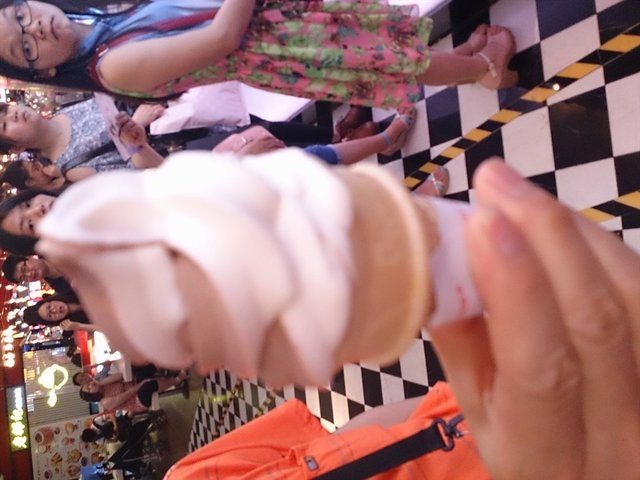 在时尚天河食街这一带,这家小店也是显得人气很火爆,帮衬的人相当多,主营饮品和小吃,也有冰淇淋,看到他家的冰淇淋特价,5元一个,买一送一,就尝尝了,没有m和k他们家的大个,造型倒是差不多,口感一般般,不够香滑,而且感觉混合了很多冰块,真是宁愿给多一两块帮衬回m和k的。…查看更多