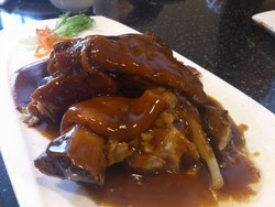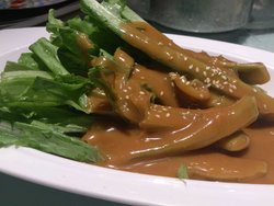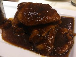 晚饭就决定是他们家啦 到的时候还不到五点 门口只有一桌人在排队大概等了十五分钟就进去了 偶们四个人就点了四菜一饭老板提醒我们不够吃额 偶们知道他是嫌弃消费不够 也只能搪塞说不够一会再点~鸡骨酱这个点评网上推荐排第一 上来的时候一坨黑的 真不好看呢不过味道确实不错呀 看着颜色黑 吃起来一点都不咸 满满的甜味呢腐乳空心菜这个味道就一般了呢 还不如蒜泥的好吃类肉末粉丝煲好好的粉丝煲 放辣干嘛呢 放得还不少类怕辣的孩子伤不起呀 就撩了几筷子随便吃吃椒盐排条这个排条做得够粗糙额 外面的面粉就是面拖黄鱼的 吸油性太强 不灵里面的排骨肉倒是蛮嫩额 椒盐是另外配了一碟 自己撒吧有点难度 直接蘸吧又太咸兰亭炒饭里面的料很丰富额 鸡蛋、茭白、红肠、青豆、香菇、肉丁整体口味算是偏淡额 饭粒不怎么样 木有粒粒分开 火候不够类…查看更多