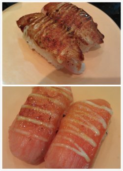 好吃的鹅肝寿司 伊秀寿司 2013-06-21去这家店的时候刚好是第一天开业有打折所以就跟老公进去吃了。服务员的态度非常的好,所以第一印象就很不错,店里位子比较多环境还不错,茶水是抹茶粉冲的,喝起来还不错,看了一下单价也不算很贵还是能接受的范围。觉得最好吃的就是鹅肝寿司了,真的很赞哦一定要一口塞进嘴巴里,马上就会融化的真的老好吃的,不过多吃会有点腻。烤生蚝、海盐寿司我觉得就比较一般了。当然蟹子寿司、鳗鱼寿司这些经常吃的做的还是蛮不错的。盘子颜色不一样所以算价格的时候很方便,可以刷卡而且态度很好,要开个人发票还会送过来给我们。另外还送了个土豆泥色拉味道还不错。…查看更多以上食評乃用戶個人意見 , 並不代表OpenRice之觀點。讚好分享好吃的鹅肝寿司 伊秀寿司 https://s.openrice.com/KtbT100I1G600檢舉 張貼 評分4味道4環境5服務4衛生4抵食人均消費¥70 (晚餐)
