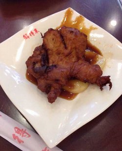 以前吃过鲜得来的,没想到一年多过去了,食物没变,价格也没变,排骨是经过油炸的,外皮脆脆的,稍微会给人一丝的油腻感,但是肉还是很大块的,吃起来特别的爽,年糕很香糯哦,主要是酱料赞,口感甜甜的,很符合上海经典的口味,甜但不腻。…查看更多
