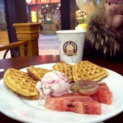 乐时松饼这家店是家专门做松饼的小店,这家店开在聚丰园路上的上坤城市广场内,这里交通还算比较便利。这家店面宽敞,店内环境优雅,非常适合情侣在这里约会。比较喜欢它家的冰淇淋水果松饼,松饼很大块被切成了四小块,方便客人食用。里面的草莓冰淇淋入口丝滑,还略带一点草莓果肉的颗粒,配合上新鲜的葡萄和西瓜后味道更美味好吃。…查看更多