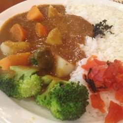 126咖喱饭 这家店是周末带孩子外出读书后找到的一家小店,这家店开在学校附近,店面不大,但是非常干净,但孩子吃饭主要就要干净卫生。不要看店面不大,但是生意非常不错。个人比较喜欢它家的蔬菜咖喱饭,它家的米饭选用了泰国香米,颗粒分明略带香味,里面的蔬菜非常丰富有西兰花、土豆和胡萝卜,西兰花爽脆,土豆很糯,搭配上浓郁的咖喱汁后味道非常好吃。…查看更多