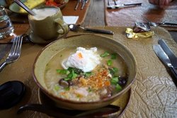 越道PHO他家开在大宁附近,这边很热闹的,这家是吃越南菜的,环境好,天气热,没有胃口,我点了一份海鲜粥,有一个温泉蛋,里面的海鲜是虾仁,很干贝,造型清爽,米烧的非常的稠,好吃…查看更多
