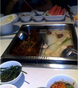 锅底:鸳鸯锅一半辣一半不辣滴,不辣滴里面还有大白菜,红枣乱七八糟滴DD,辣的里面就加了血和豆腐,那里的血真的是很出名啊,很嫩又很入味,豆腐我倒觉得这家店一般般吧,豆腐里都是汽泡,冰冻的厉害了。配菜:3个人点了6个配菜,根据实践结果——————足够了。羊羔肉:羊肉满嫩的说,不过光顾着聊天,只吃到一点点,这个量老实说也满少的啦。午餐肉:质量一般一般吧,切的满薄滴,和南华火锅的午餐肉不好比的啦鲜笋尖:全部倒进辣的锅里了,最后越烧越咸越烧越咸,但是偶喜欢吃大,波及波及吃了很多,又要上火了。金针菇:这里的金针菇无论是从质量还是从数量上看,都不是这个价格范围之内的啊,真奇怪真奇怪。蒙古宽粉条:吃到最后才想起来的食物,最终还是没有消灭掉啦,味道还是满好吃的,大白菜:蔬菜偶也喜欢滴,吃麻辣烫必店的蔬菜啦,切工还是满到位的,符合我的喜好啦。先放在不辣的里面烫熟,再去辣的里面捞一捞,因为那个辣锅实在是太咸了。其他的配菜都是我在别人桌上看到的:玉米、丸子、平菇等等,那里的牛肉羊肉真的是满贵的,比小肥羊的还要贵。调料:免费的,这个免费的质量就是2个主调料:腐乳和沙茶,其他的葱、蒜、盐、辣椒、醋都是自己DIY的。饮料:芭乐汁,一人一杯就麻油了,味道很好的,很清口的,其实就是番石榴汁,在超市里有卖的很定比这里的便宜,还点了大瓶可乐,加冰吃的还是满爽的啦。以后还会点那个评价满高的酸梅汁的。结账:有贵宾卡,8.8折(除锅底、酒水、海鲜)…查看更多