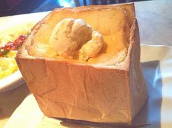 最喜欢还是他家的面包秀,香脆的面包上面一个冰冷的冰淇淋求,曼曼的融化慢慢的融合,冰与火,脆与绵,交织在一起,其他的菜和他比起来简直弱爆了!!现在时兴到他家不吃水煮鱼了,其他的鱼的做法也很棒,比如这个不知名的鱼,朋友点的,我也不知道名字,泡椒口味,很好吃!!…查看更多