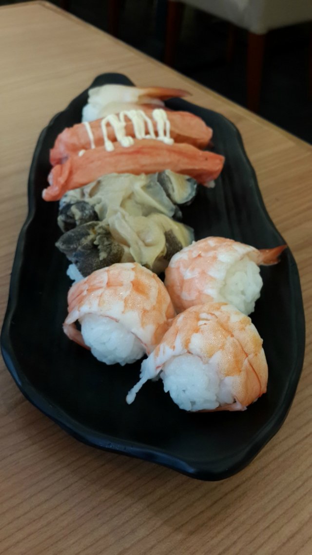都係第一次嚟广州食,之前係香港食过觉得唔错,反而係广州食贵再加一般般,环境麻麻服务员还OK,夏天空调超级劲,冻到鸡皮。睇睇餐牌,全部都係单件点,价格都比较偏贵小小,蟹棒寿司,好似雪藏多D口感一般般,北极贝寿司,谂住係我最爱所以点佢嚟食,比较细片,但都算爽口嘅,荣螺寿司,算几鲜味。…查看更多