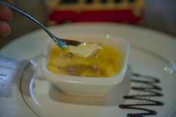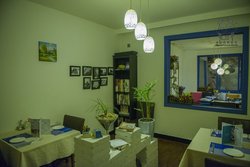 这是位于东风路大桥旁边的一家法式西餐厅,店内蓝白相间的装修和布局很有格调和感觉,墙壁上的挂画在向来客默默的陈述店内两位主厨的来历~两位主厨曾就职于“princess cruise”游轮,师承法国大厨,专攻法式菜和意大利菜。开胃菜黄油面包味道一般,深海墨鱼沙拉口感清脆,蔬菜的清香融入墨鱼片的味道还不错,酸甜味很开胃口,意式橄榄蒜香面里面融入了披萨草,香草,蒜泥等,口感有嚼劲,味道偏淡,罗西尼牛排,烤制7分熟,牛肉是选用新西兰上等牛排,用一盅牛骨少司Demi牛骨头骨髓熬制而成的酱汁水淋在牛排上,切开很嫩,味道刚刚好,草莓拿破仑,拿破仑中间夹的是卡斯塔酱,是用裱花嘴挤的噢,这种拿破仑是法国最传统的拿破仑之一, 这里充满了优雅舒适的环境里享受美味绝伦的法式西餐,一边引用店家赠送的白葡萄酒,不亦乐乎哈。…查看更多