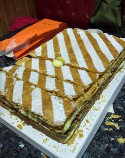 同事过生日的时候我们帮他买的蛋糕,因为小伙伴都说拿破仑的好吃嘛,所以买的也是拿破仑,3磅的看上去很大,吃起来人不多的情况,一长条一切,能够看到奶油酥饼和蛋糕之间的夹层,卖相好的不得了,奶油是比较接近原味的,有点甜,酥饼反而奶香味也很重,口感比较香脆一点,整体口感脆香绵软,一应俱全。…Read More