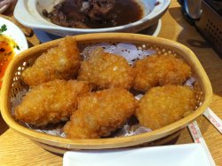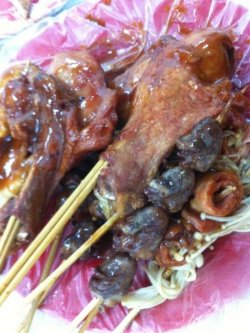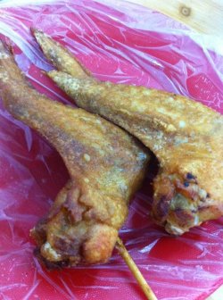 外面的烧烤摊,炸鸡店很多,唯独这家是电视上一直放的。知道这一带这家店很有名,今天姐姐开车带我来吃。点了2个全鸡翅,2个鸡腿,2串鸡心,2串金针菇,2串鸡胗,2串年糕,2串里脊肉。鸡翅吃了椒盐的,趁热吃,很脆。其他沾了甜酱,蛮有特色的。一共消费了50.5元。它家金针菇有个品种是培根包金针菇,第一次看到,蛮特别的,培根味很浓。…查看更多