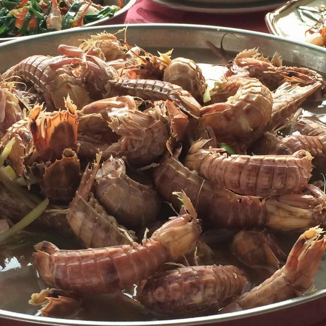 点了一盘濑尿虾,平时都是吃椒盐的,但是这次吃白灼的味道也不错,濑尿虾比较新鲜,所以肉质吃起来很有海鲜本身的鲜甜,一碟子濑尿虾无比的多,一桌子人都吃不完,汁比较多还可以装一点到自己的碗里。这里的环境总体还可以,比较开阔,很自然风味的装修风格。…查看更多