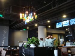 金鱼居酒屋吃寿司 金鱼居酒屋 2013-08-01参加搜狐微博的活动,得到朝阳公园蓝色港湾的湖畔美食街300元代金劵,没有消费限制。5月12日是母亲节,我和闺女吃的午饭。我选择的是金鱼居,是因为我闺女爱吃寿司。金鱼居坐落在朝阳公园蓝色港湾的湖畔南边,很好找。金鱼居酒屋将餐厅和居酒屋合为一体了。一进店门,就看到一个大鱼池,有大鱼,还有小的观赏鱼。楼下只有2桌,一般客人就要上楼吃饭,还有室外露天座位,客人自愿。这里的灯是啥做的?原来是主厨和店主设计的,由日本米酒瓶做成的五彩的灯饰。店内光线不算好,我选择的座位离窗户还算近。有免费的茶水,服务很到位,不用你说,服务员就帮助续上了。看了看菜谱,大同小异的寿司,还是点个318元套餐更省事。寿司与芥末、调料搭配,绝配![IMG:4食材很新鲜,是金枪鱼。外面的鱼子酱很好吃,里面有大虾。 大同小异的寿司,里面是虾段。这个寿司里面不是虾肉,是蟹肉 棒 。可以刷卡消费,感觉有点贵。不过寿司吃的就是一个鲜,这一点还很满意。…查看更多+ 4以上食評乃用戶個人意見 , 並不代表OpenRice之觀點。讚好分享金鱼居酒屋吃寿司 金鱼居酒屋 https://s.openrice.com/KtbT1m04e0600檢舉 蝎子狮子 第一次发食评,成功了就不能改了吧?最后一张照片,应该在中间位置,就完美了。2013-08-02 回覆 張貼 評分5味道4環境5服務5衛生4抵食用餐日期2013-05-12人均消費¥160 (午餐)慶祝紀念母親節