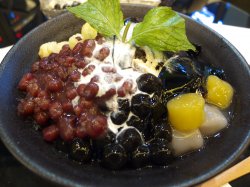 COCO PARK这家GAGA鲜语,的确带给了我惊喜。平时吃RBT,STARBUCK多了,这家店带来了一点新鲜感。 店里的装修以黑白为主,带点时尚,绿色沙发是亮点,坐着也舒服。餐厅主营台湾甜品,带点主食,蛋糕等。主食有意粉,台湾卤肉饭,还有沙拉,薯条,三文治等轻食。主打的甜品有汤水,水果茶,烧仙草,绵绵冰,咖啡等。我们两个人点了一份意粉,牛排薯条,榴莲绵绵冰,还有烧仙草。先说意粉,味道还是不错的,价钱约48元,略嫌贵了。牛排薯条,其实就是加粗版得薯条,撒了辣椒粉,配的蘸酱有芥末蜂蜜味,还有忌廉味。我们要的是芥末蜂蜜味,但是蘸酱很少,也很稀,没有对面艾薯的好吃。接着就是我们的重头戏,榴莲绵绵冰。强烈推荐所有爱榴莲的朋友试一下。真的很浓郁的榴莲味。绵绵冰里面的也应该是用鲜榴莲做的,好特殊的香味。还有就是烧仙草,上来的时候,看起来好多配料,而且摆得也很诱人。不过烧仙草下面是冰沙,是很绵的冰沙。味道还是可以的。总的来说,这家店很适合三五知己小聚,八卦。还会再来,常来。…查看更多