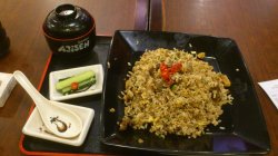 味千生意还是挺好的,可能是地段的缘故,附近没什么吃的,就来了他们家,服务员招呼坐下后,送来了茶。拉面据说是粉料汤包,所以不太想吃,于是就换了个没吃过的炒饭,这个叫麻麻辣辣牛肉饭好像,味道很不错。上来好大一盘哦,还送了汤。饭看上去有点像蛋炒饭,颜色有点深,闻起来很香,尝了一口,饭硬硬的,粒粒分开,有一点点蛋炒饭的感觉,但是放了酱油等调味料,所以味道偏重,里面有点辣椒粉,吃上去微微的辣,很好地凸显出了米饭的自然香气。里面还有很大块的肉,这个肉很好吃,有点像腊肉,肉质紧实,有点甜甜的,很香。整盘饭不油腻,料多,味道不错,配的汤就是普通的味增汤,感觉太一般,没怎么喝。性价比还是可以的。…查看更多