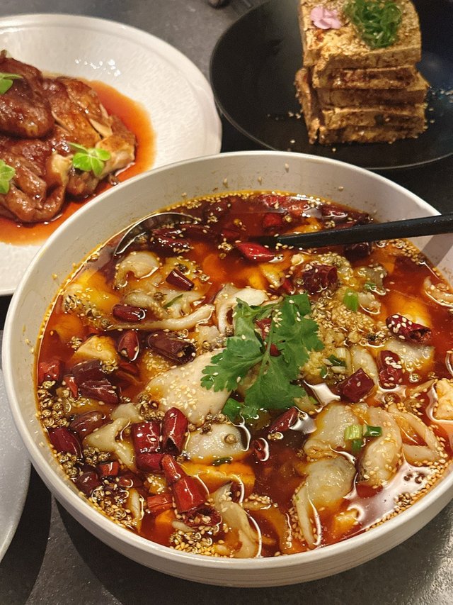 近排係點評發現有個四人餐,人均¥100+就可以食到黑珍珠入圍餐廳,即刻約埋朋友一齊去試下!餐廳裝潢高檔雅致,走東方美學元素,主打川味融合菜,以川菜為基底,變化出不同嘅創新菜式,設有多間包間適合家庭或朋友聚餐,各種喜慶提供佈置服務。滋味豆腐❣️醬汁味道辣辣地,香脆可口。椒麻豉油雞❣️肉質軟腍嫩滑,味道麻而不辣。有機蕃茄煨牛坑腩❣️牛坑腩炆得好入味,味道酸甜開胃。豆花水煮魚❣️魚片滑嫩鮮香,豆花口感軟滑,魚片同豆花索曬啲湯汁,香辣惹味。雲南小菇炒幼瓜❣️炒西蘭花❣️清爽解膩清波擔擔麵❣️麵條爽口帶韌度,醬汁辣辣地,食落幾開胃。四季花饌❣️ 百合泥甘甜美味,入口綿密,賣相吸引。^_^…查看更多