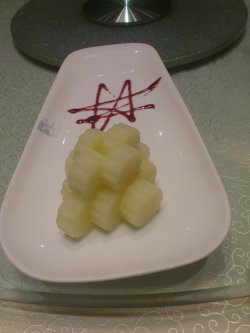 家常菜,随便点点.可惜手机不给力,拍了很多张只保存了这些.这是 薄荷味的山药.我觉得很好吃很爽口.但是同桌居然说,嚼起来像在吃牙膏,好吧,没想法了.有点点辣,木耳很小,不过据说这种大小才是正宗的,谁知道呢?冰镇芥兰,哦!为什么上来的芥兰感觉干干的。太次了。一点都没有冰镇的范。红烧肉很受欢迎阿。据说很好吃,但是一眨眼,锅里只剩肥肉了。没敢下筷。总的来说,菜量比较小,厨师水平还行但是菜不是太新鲜。哎。…查看更多