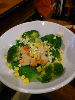 老朋友相聚,重点永远不再吃饭上.不过吃面有利于促进感情,所以我们就近选了家味千拉面.以前每个人只是一人点一碗面.这次她点了泡饭,再加一份沙拉.我觉得量很足,食料很新鲜,就顺手拍下来了.味千拉面的面越发不再吸引我们了.反倒是一些小食翻着花样的上感觉很可口.这份沙拉算是首推的.有西兰花,虾肉,玉米粒,松子仁,而且沙拉酱很足,在另一个容器里你自己倒. 很实惠.…查看更多
