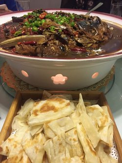 鱼头泡饼的名气比较大,听说了很久,而且在微博上看到不少人推荐,于是选择了一天来吃吃。首先要说这家店位置不在临街,在高新三路北口往东一点,正门还在楼背后,唯独好处就是有专人指挥到专用停车位。一楼基本是店家装饰接待处,二楼一上去透明厨房操作间让人眼前一亮,食材整齐摆放,感觉很干净。包间有最低消费,于是选择了卡座,环境比大厅好点。鱼头是必须的,起步五斤,要的麻辣的,大大的盘子端上来简直太无敌了,给配了两份饼,鱼的味道一般,没有传说中那么好吃,六个人吃鱼头最后还剩了不少。那个配的饼蘸鱼头里的汁吃起来也一般。芝士焗红薯是给爱吃甜的人点的,味道不错。茶树菇也可以,这两个菜适合不吃辣的和孩子吃。圆白菜炒粉丝味道也不错,但是他们推荐的鸡肉和其他菜差强人意并不是让大家很满意。这家总体来讲,名大于实,味道不惊艳,各类菜都属于一般,但是做为请客的话环境不错,不属于大众消费,人均在百元以上。…ดูเพิ่มเติม